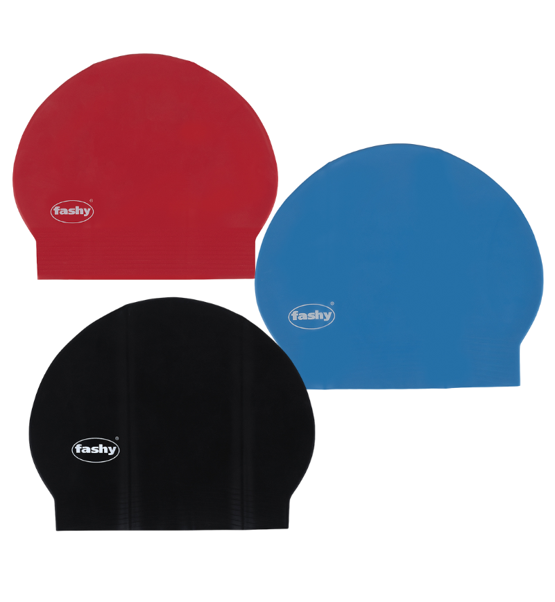 Latex swim cap sold individually in separate bag. Sold in packages of 20pcs, 5 black, 5 yellow, 5 red, 5 blue.