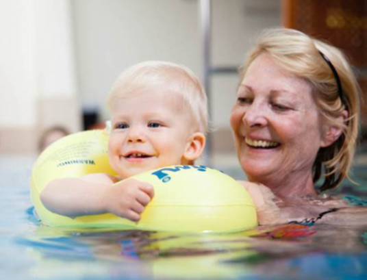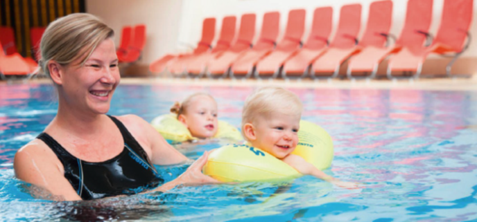 En babysimring med bra passform så dom små kommer ner i vattnet.