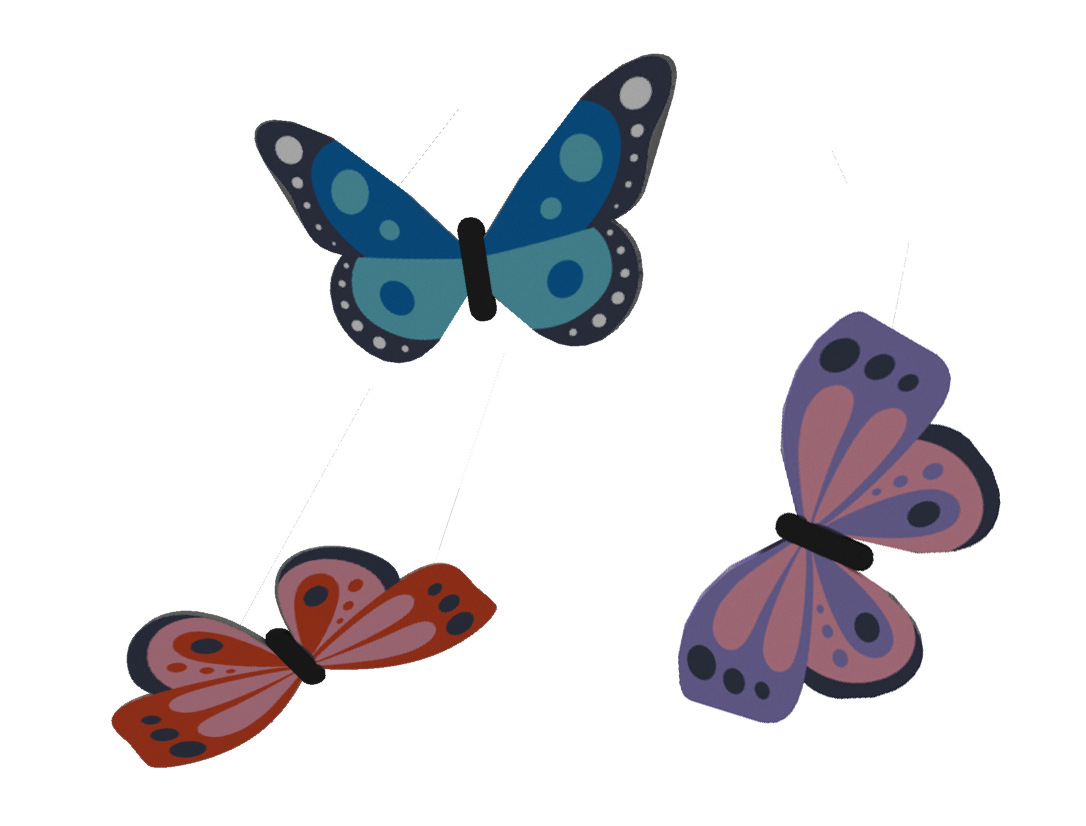 Fjärilar 3st/förp skapar en fantasivärld i taket över bassängen, Tillverkade i material som klarar simhallens tuffa miljö.